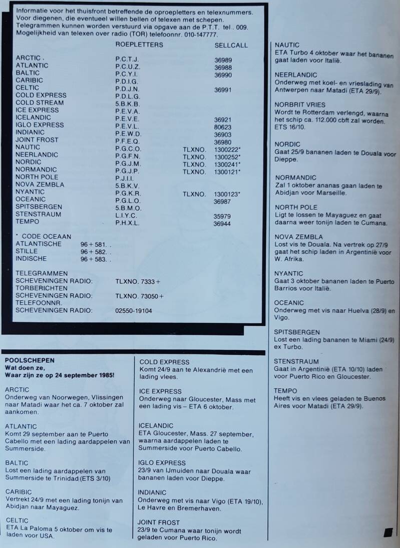 ( roepnamen van de schepen kloppen niet in dit overzicht)
