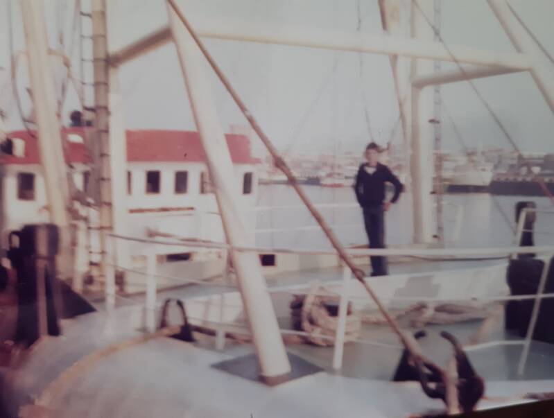 Het was het schip van de vader van een vriend die ik kende van de zeeverkenners. Het was een 2 weekse reis en we gingen vissen boven denemarken op schol en tong.